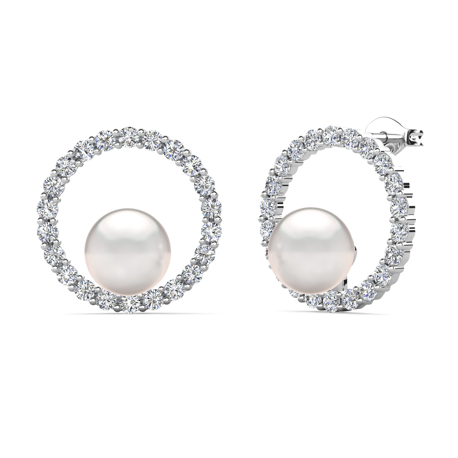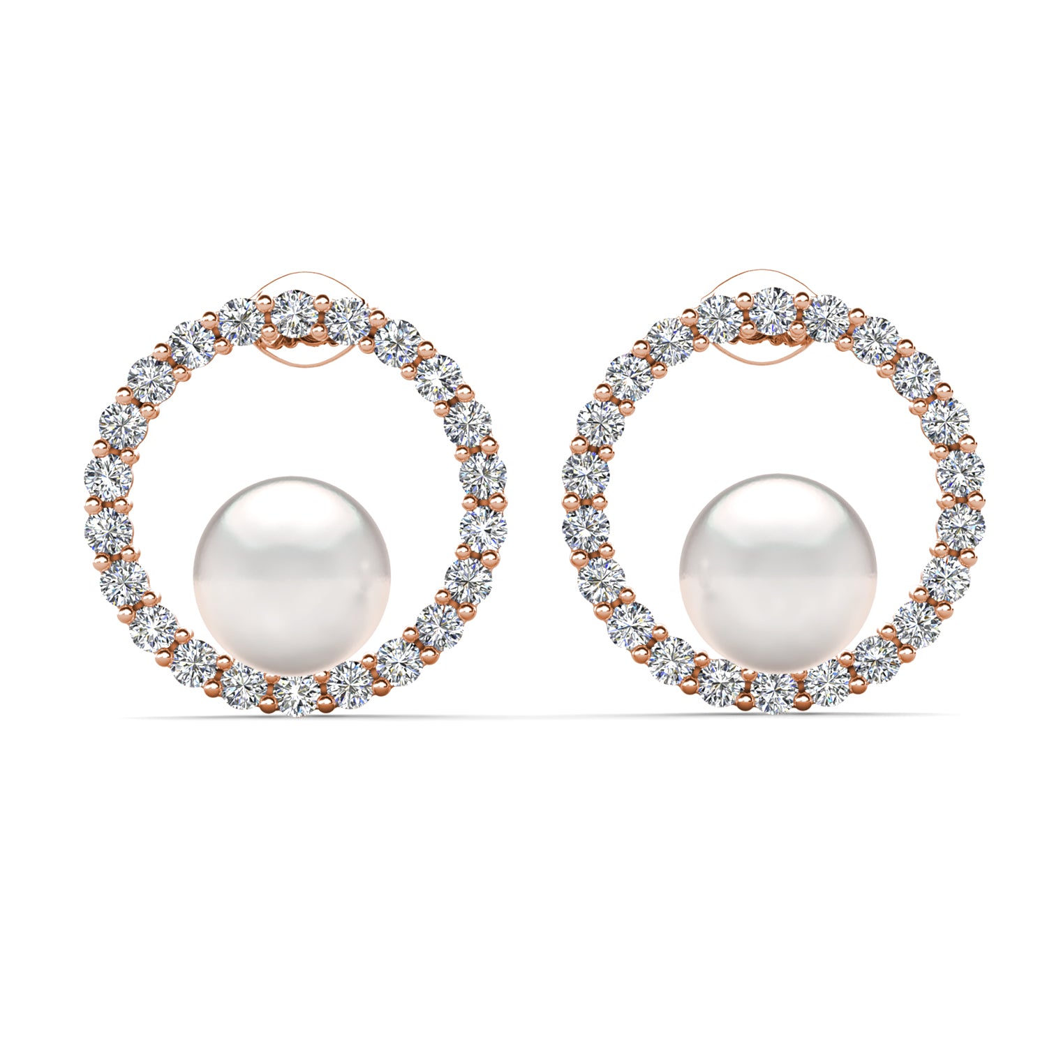 Halo Pearl Earrings ME217 WG RG Cyncerity Jewelry with Moissanite, 925 Sterling Silver