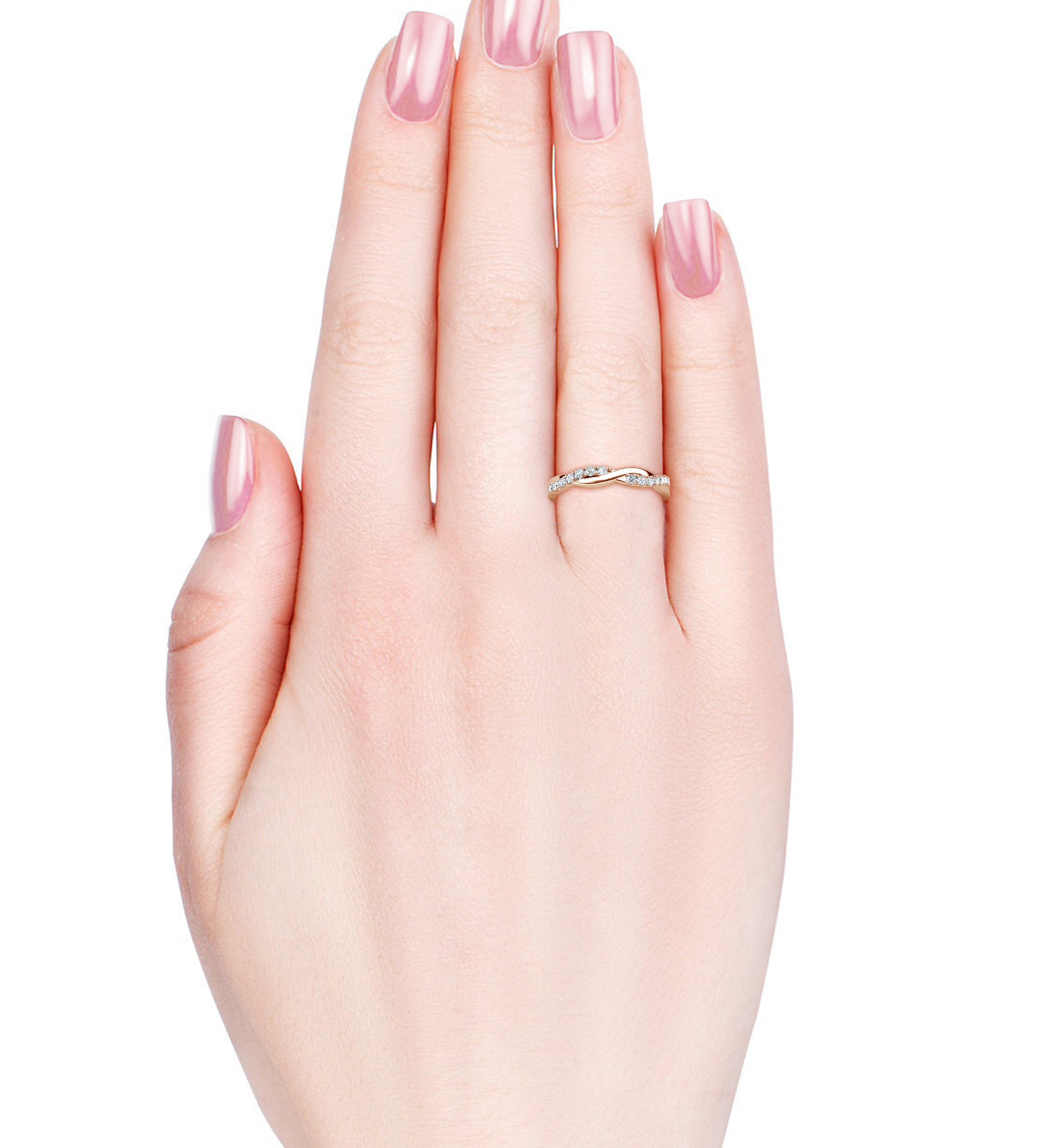 Sweet Twist Ring MR117 WG RG Cyncerity Jewelry with Moissanite, 925 Sterling Silver